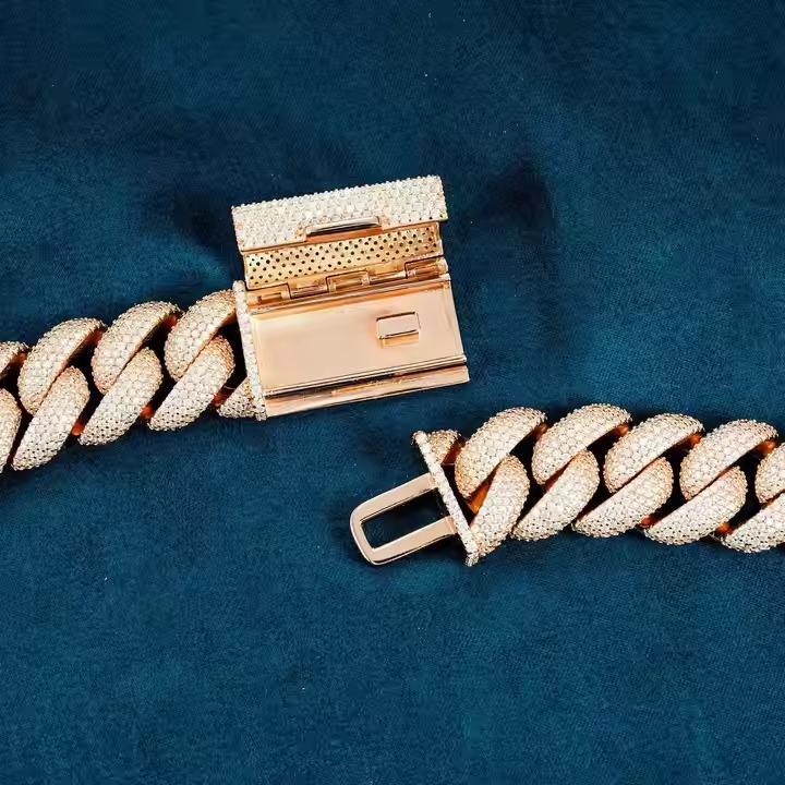 Luxury Silver Cuban Link Chain Fully Iced D Colour VVS Studded Moissanite Diamond Tester for Wedding
