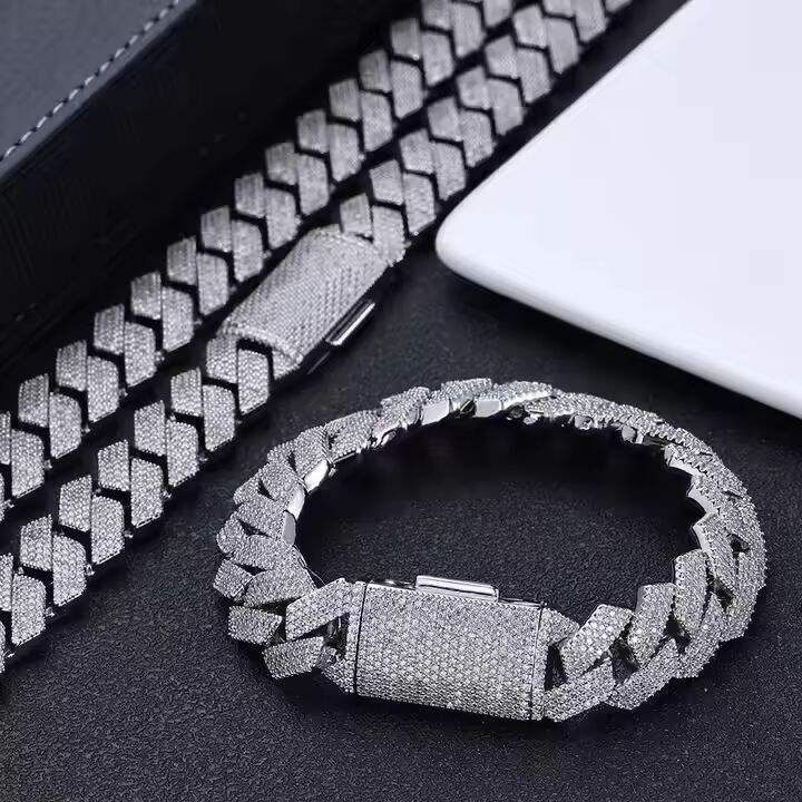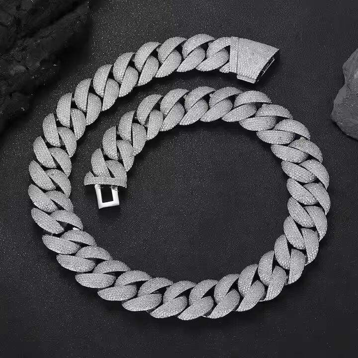 Colliers unisexes de luxe en argent avec perles d'eau douce et moissanite, style cubain, entièrement pavés de pierres, fermoir chaîne, bijoux hip-hop