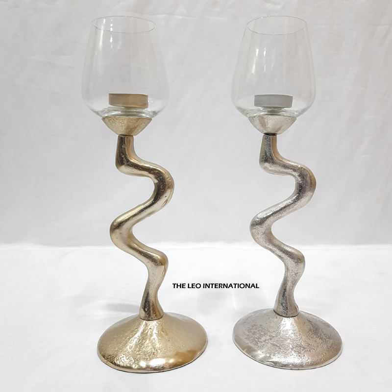 Porte-bougie texturé argenté de luxe avec verre, ambiance élégante et stylée pour toute pièce, forme créative