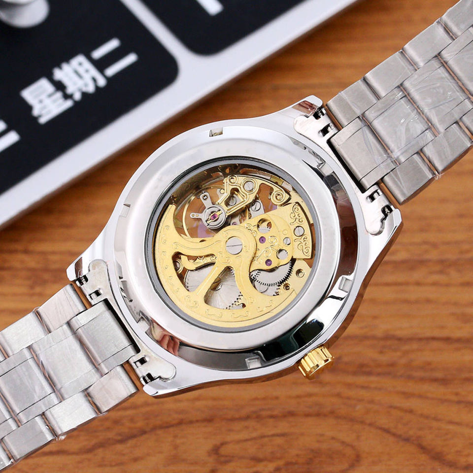 Montre mécanique squelette de luxe pour hommes Mouvement automatique Cadran creux Montre-bracelet en acier inoxydable