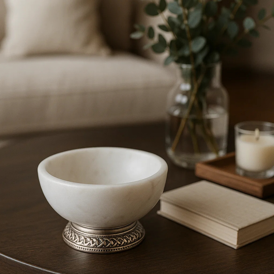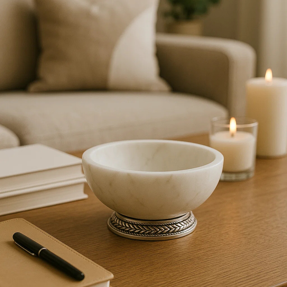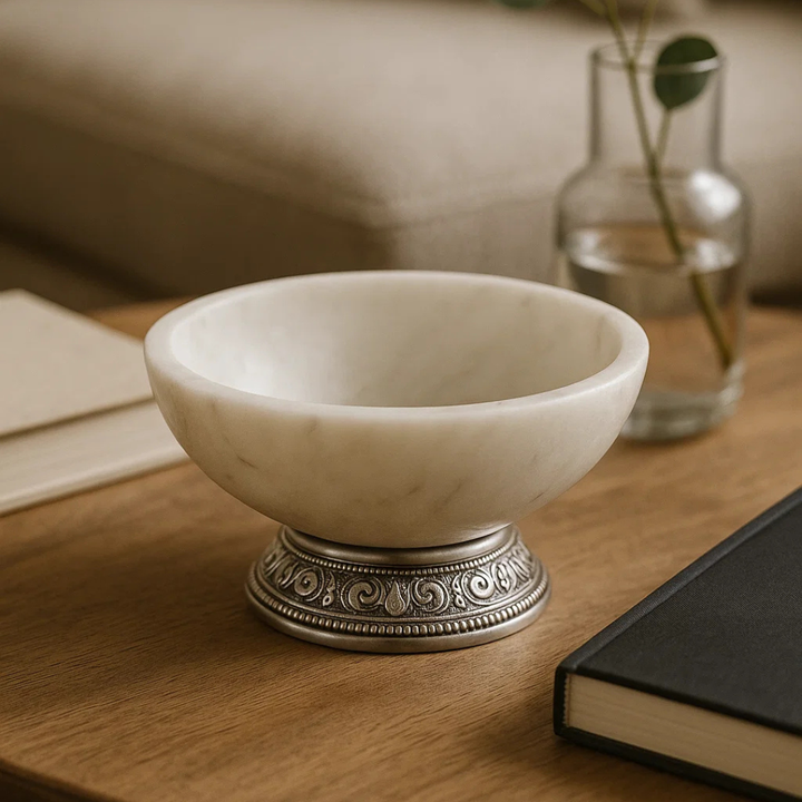 Bol à chips en marbre personnalisable de luxe, base en métal, fait main, écologique, moderne, élégant, décoration d'intérieur, présentoir à fruits et bonbons haut de gamme