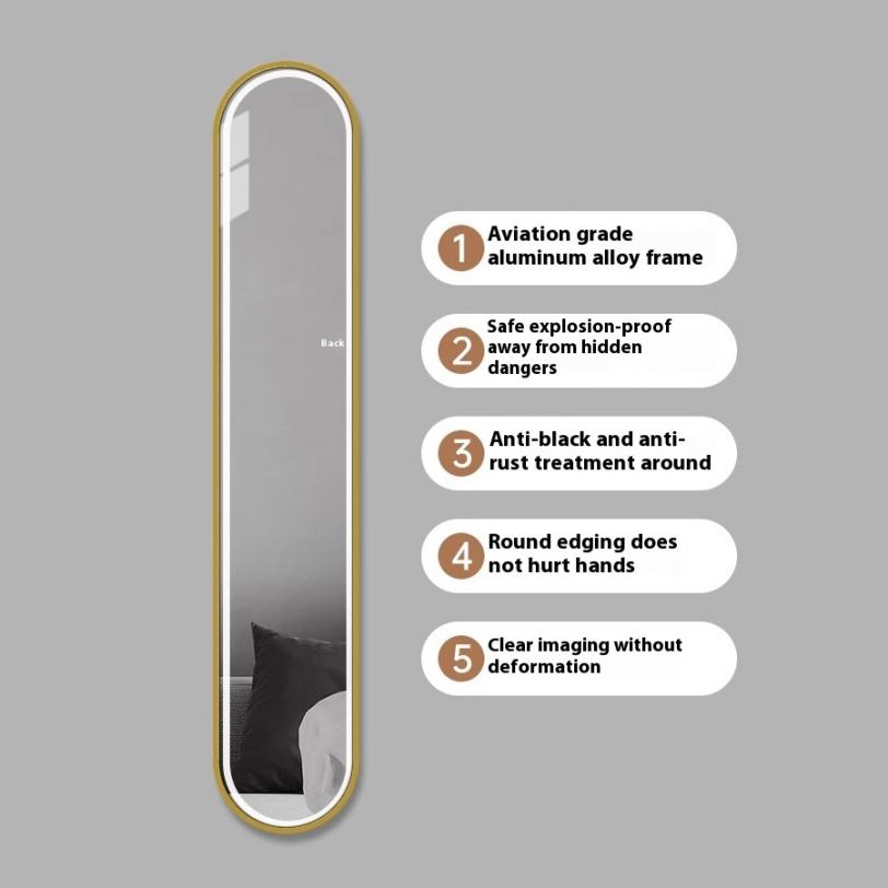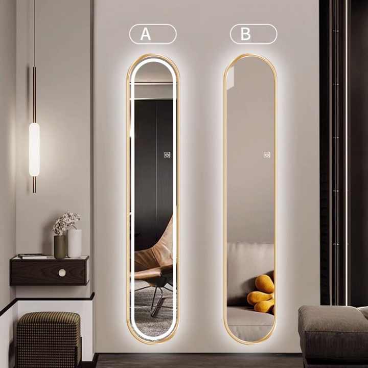 Miroir de luxe de petite taille, extrêmement étroit, pleine longueur, avec éclairage LED, pour décoration d'entrée, miroir mural long