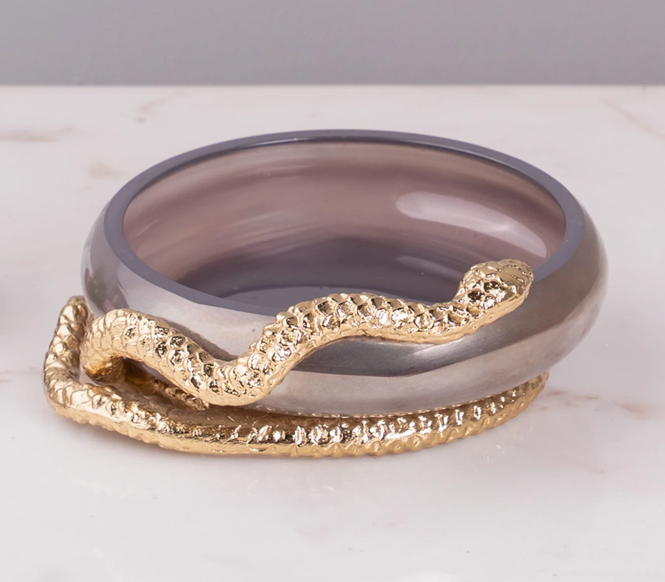 Porte-savon de luxe en verre violet avec serpent en métal doré pour décoration de salle de bain