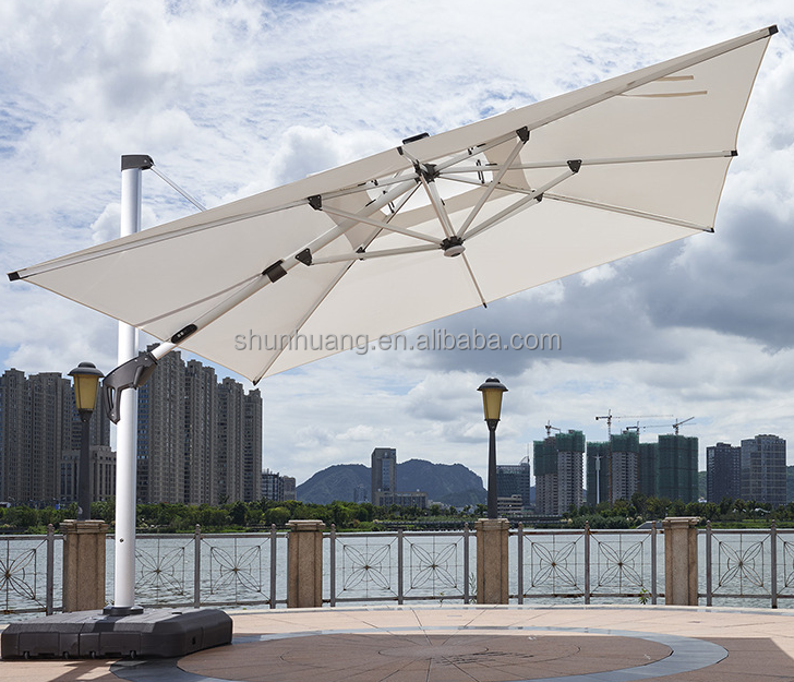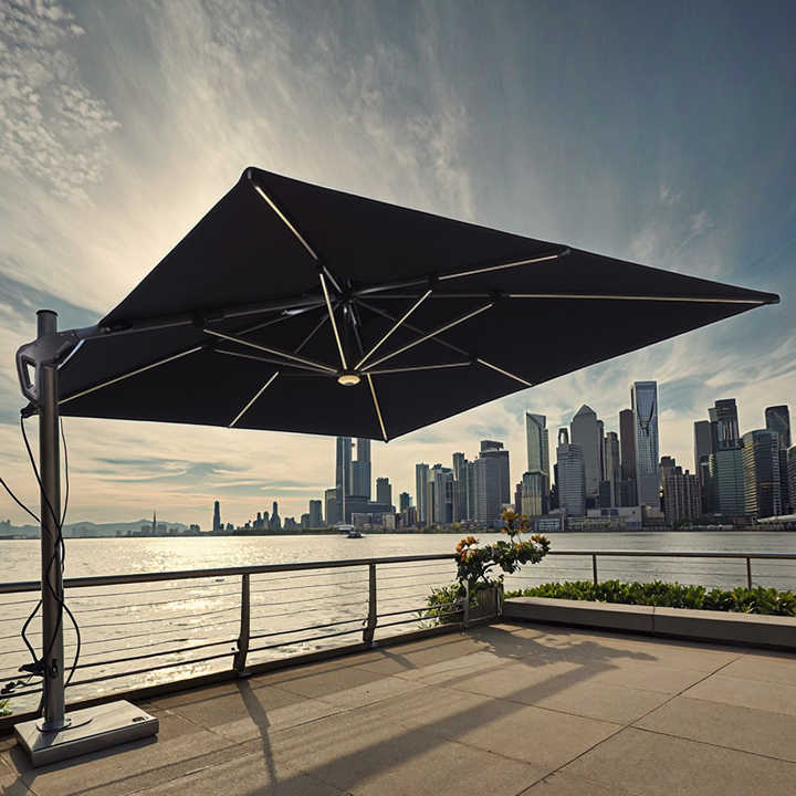 Parasol de luxe solaire de grande taille pour l'extérieur Parasol de patio 3x4m Hôtel Plage Cadre en aluminium Parasol cantilever avec lumières LED