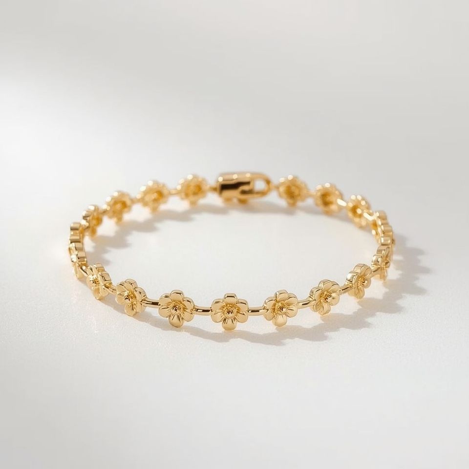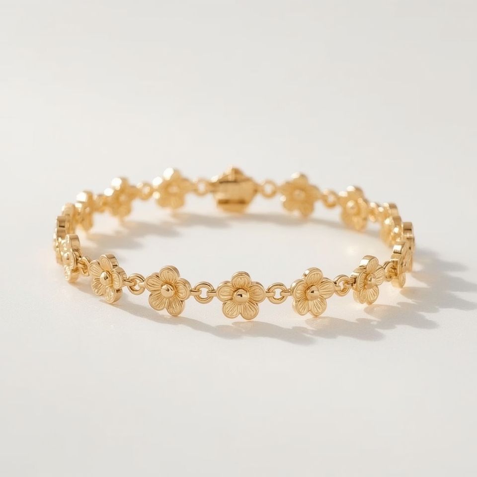 Bracelet en or massif 18 carats de luxe, chaîne florale élégante, bijoux fins pour femmes, fabrication sur mesure OEM