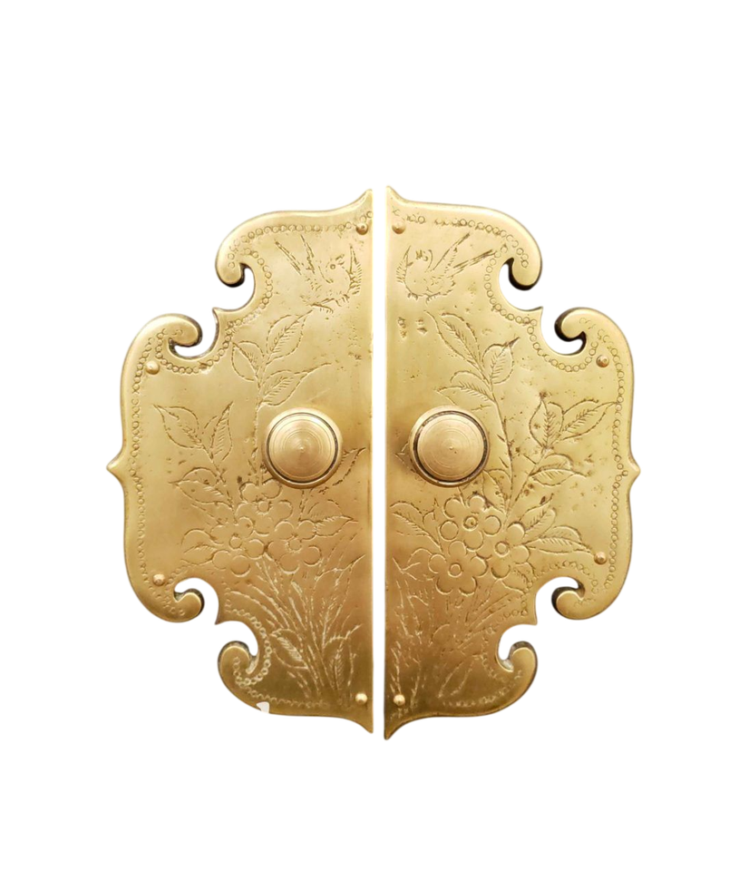 Luxury Solid Brass Door Pull Handle Pair with Handcrafted Floral Engraving, Antique Gold Finish Decorative Handle for Main Doors