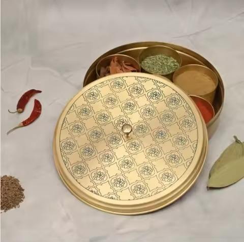 Boîte de rangement pour épices de luxe en métal avec couvercle décoratif, idéale pour organiser les masala de cuisine, solution de rangement pour les essentiels de cuisine