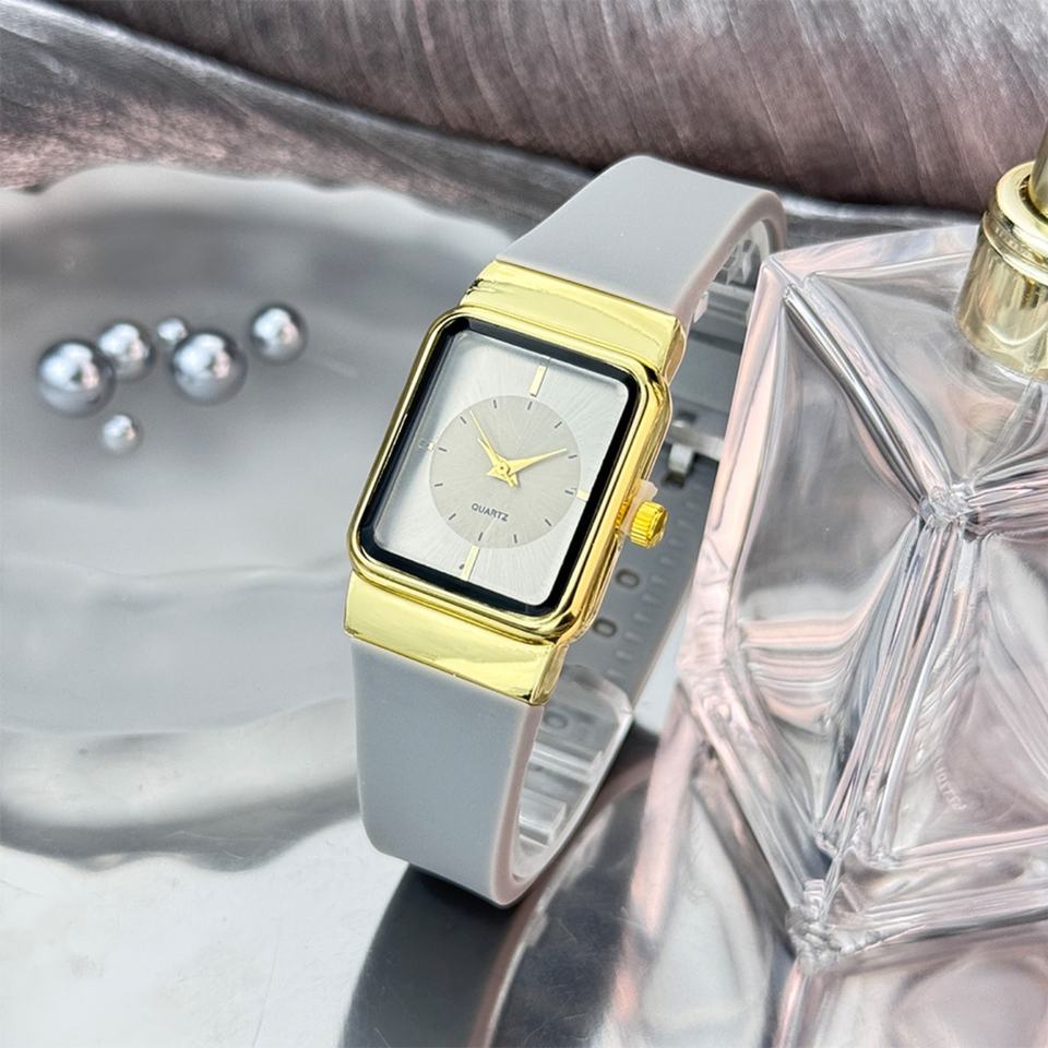 Montre à quartz de luxe à cadran carré avec bracelet en silicone multicolore, boîtier doré vintage, accessoire de mode élégant pour femme, cadeau