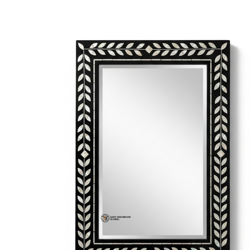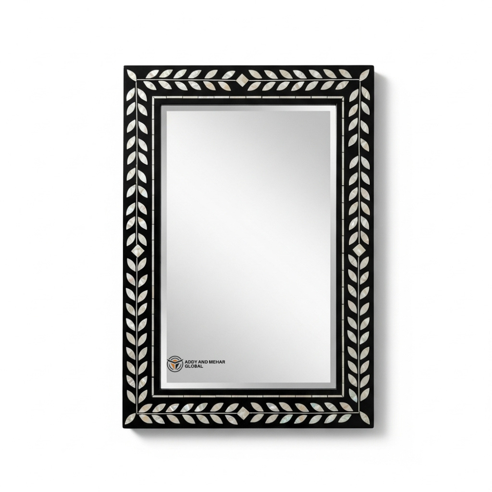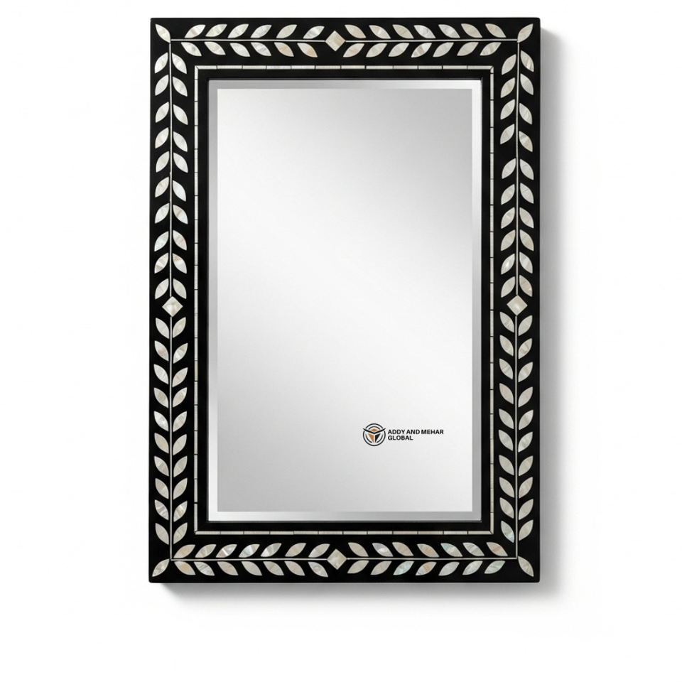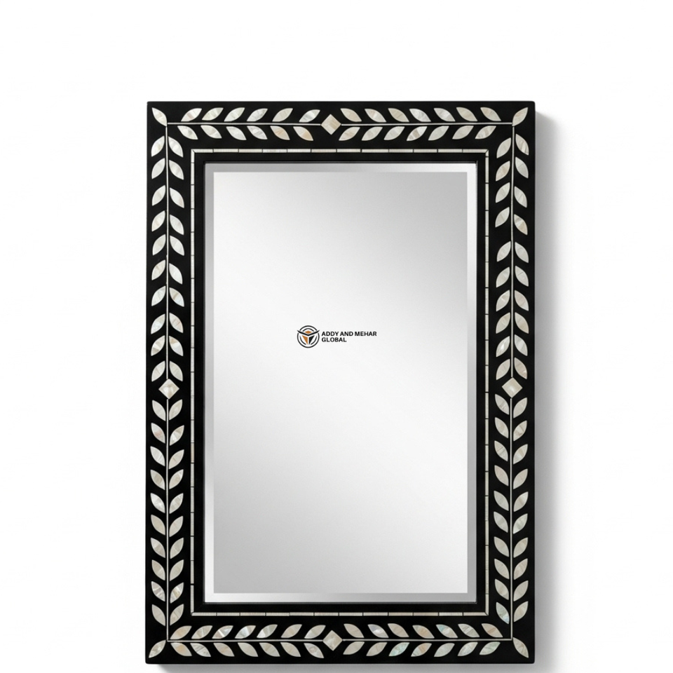 Miroir mural carré de luxe en MDF écologique de 5,0 mm d'épaisseur, fait main, style Art déco, décoratif, cadre géométrique noir, mariage Addy Mehar
