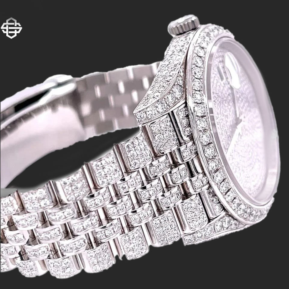 Montre à quartz de luxe en acier inoxydable 20mm pour hommes cadran chic coupe fantaisie pleine Moissanite glacée superbe montre-bracelet de mode