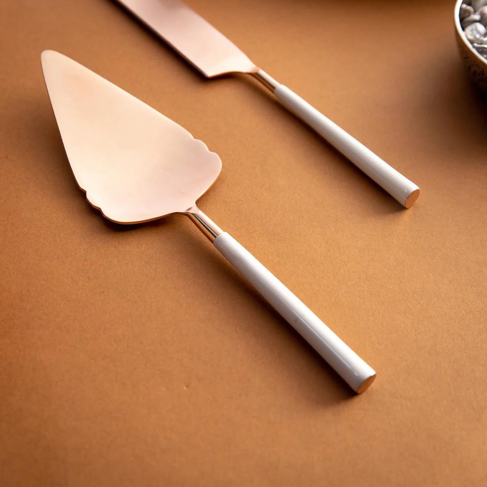 Ensemble de serveurs à gâteau de luxe en acier inoxydable avec poignée design, conçu pour un service élégant des gâteaux et des tables à manger