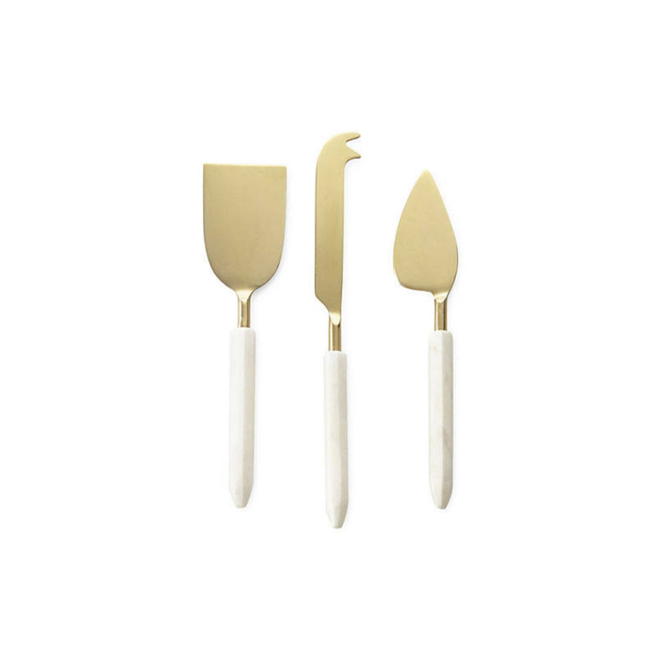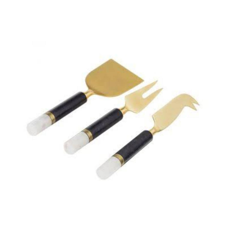 Ensemble de 3 couteaux à fromage de luxe en acier inoxydable avec manche en marbre Ensemble de couverts à fromage de meilleure qualité avec plaqué or pour la maison