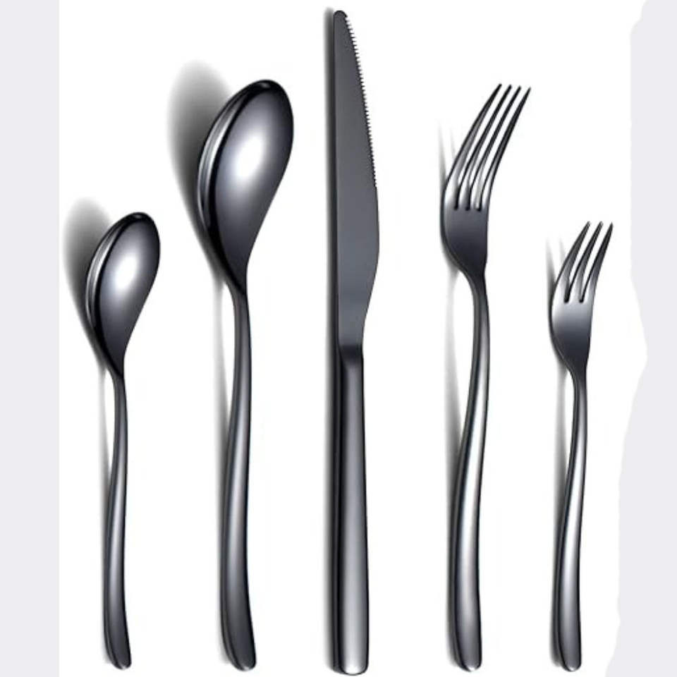 Luxury Stainless Steel Cutlery with Lightweight Wooden Handles in American Style 4 Pcs Set Silver