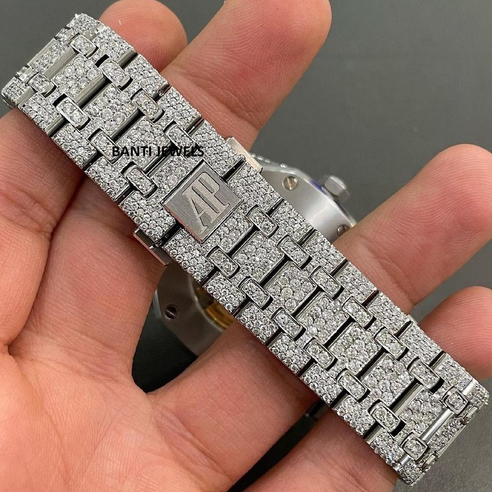 Montre de luxe en acier inoxydable entièrement sertie de moissanite avec mouvement automatique, bijoux hip-hop, aspect diamant VVS1