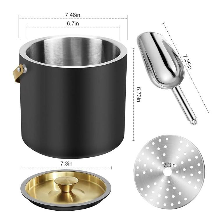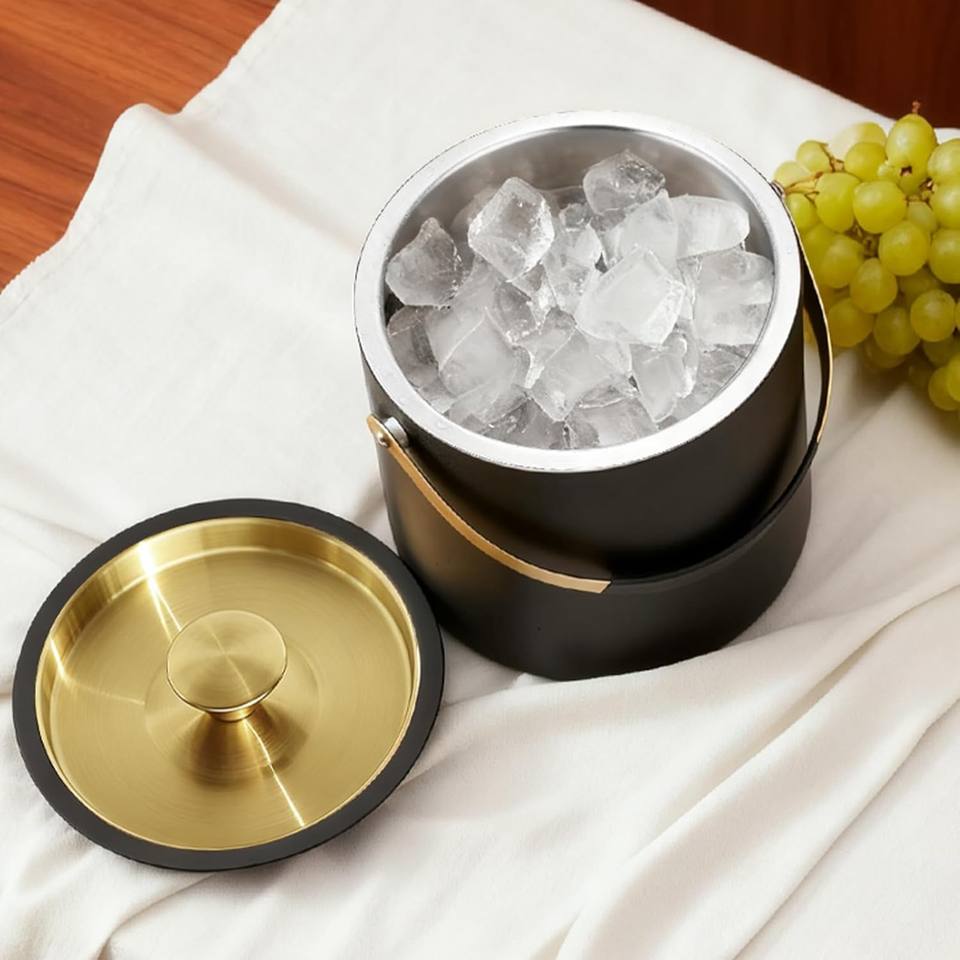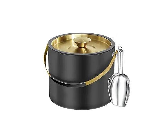 Seau à glace de luxe en acier inoxydable avec couvercle, louche et poignée dorée – Design moderne et isolé pour bar à domicile et réceptions
