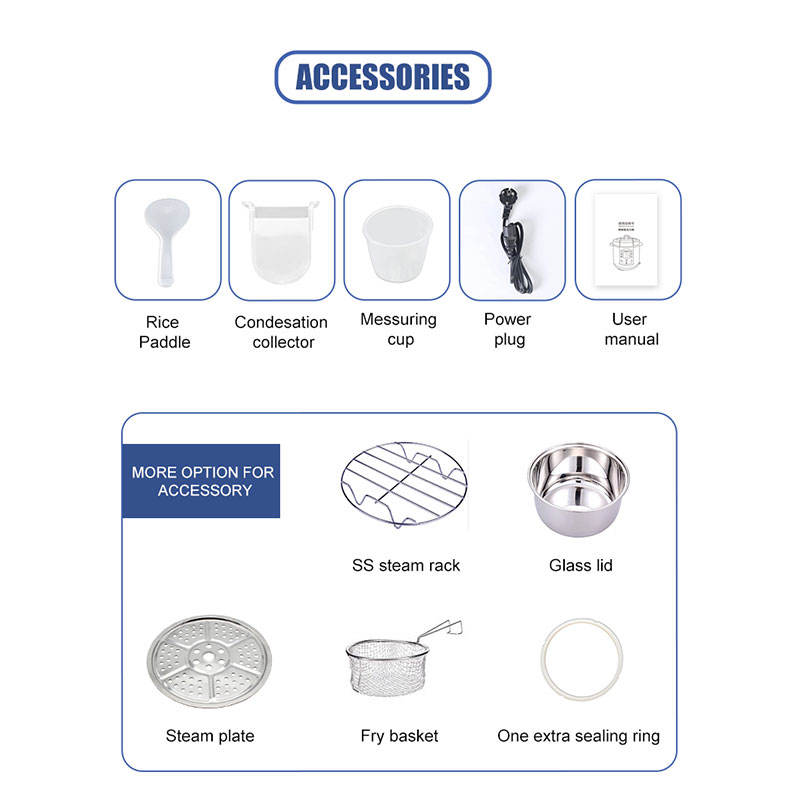 Préréglage de Temps de Cuisson, Pot avec revêtement anti-adhésif intérieur, Protection contre la surchauffe, Dispositif de décompression, Réglable Réglage de la Pression, Menu multi-funtionFonction