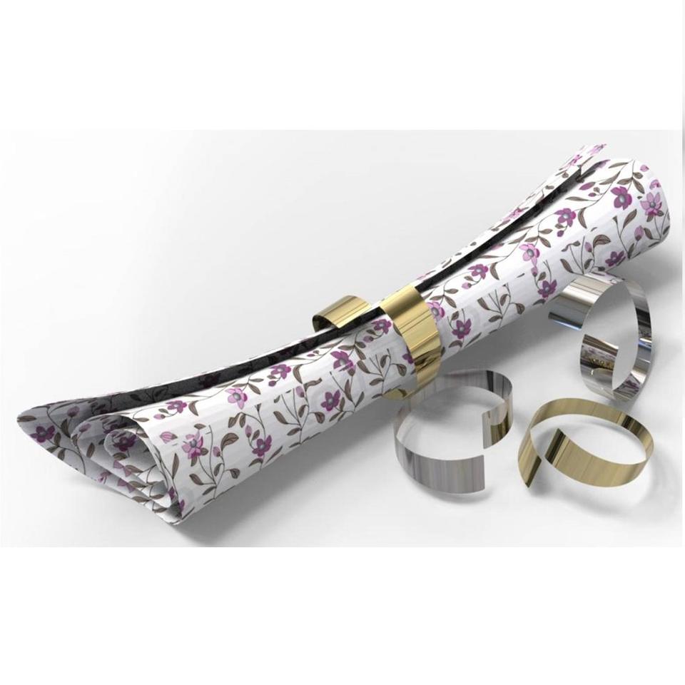 Anneaux de serviette de luxe en acier inoxydable, finition PVD or et argent, support de table décoratif pour hôtels, mariages et réceptions gastronomiques.
