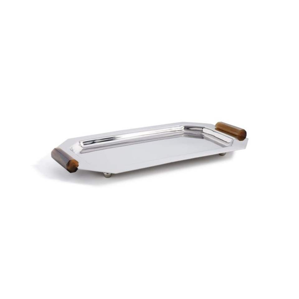 Plateau de service rectangulaire de luxe en acier inoxydable avec poignées en résine, plateau décoratif moderne argenté pour hôtel, mariage, décoration intérieure