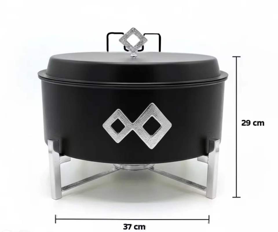 Plat à gratin en acier inoxydable de luxe à dôme côtelé, pot de service décoratif pour buffet, vaisselle pour hôtels, restaurants et traiteurs