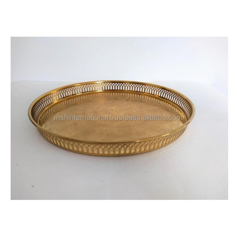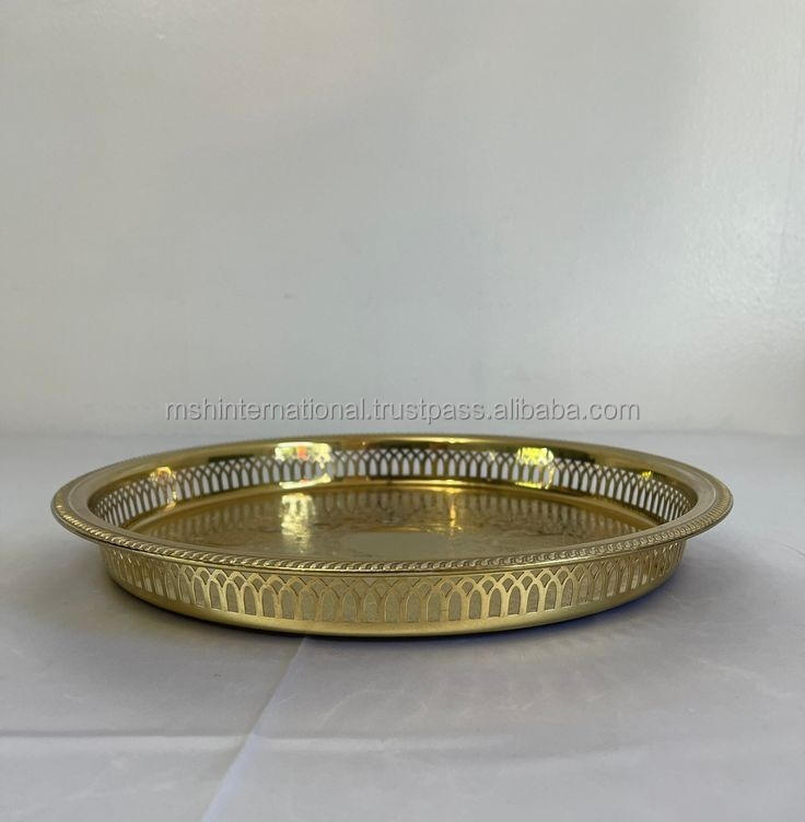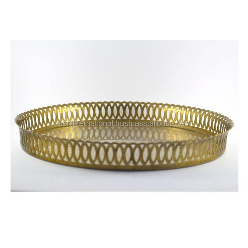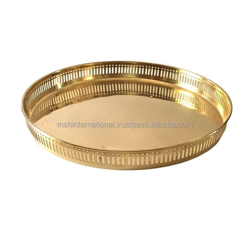 Plateau de service rond en acier inoxydable de luxe, assiette en or, assiette de service de mariage haut de gamme et plateau de banquet