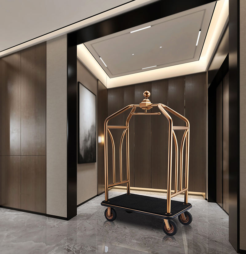 Chariot Bellboy en acier de luxe Chariot de service de cage à oiseaux de concierge d'hôtel Chariots à bagages en or rose Service de bagages Bellman