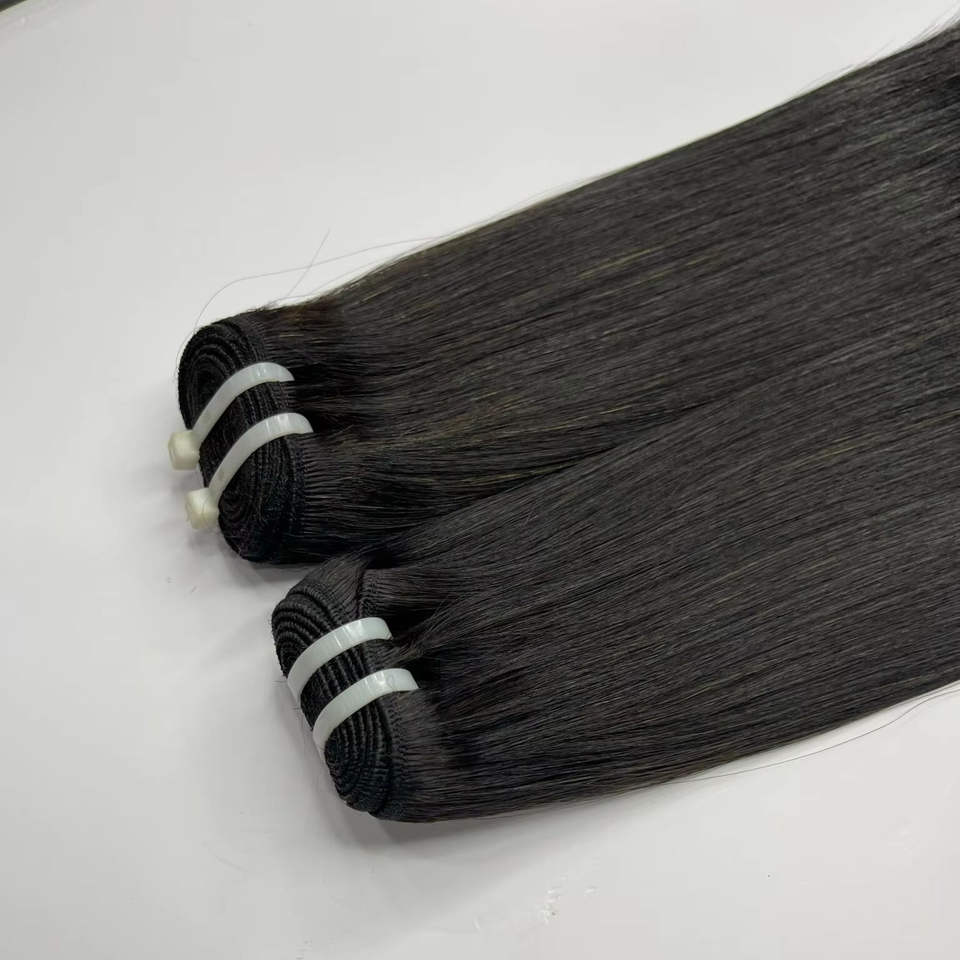 Extensions de cheveux lisses de luxe tissées à la machine, finition soignée, pointes épaisses, double tirage