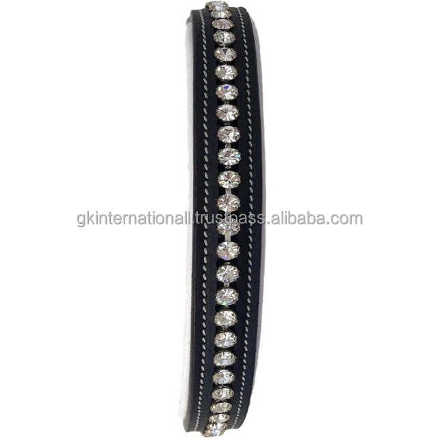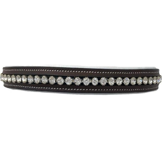 Rembourrage et couture blancs faits à la main de forme droite de luxe en cuir véritable bande de front de cheval personnalisée avec 1 rangée de cristaux clairs