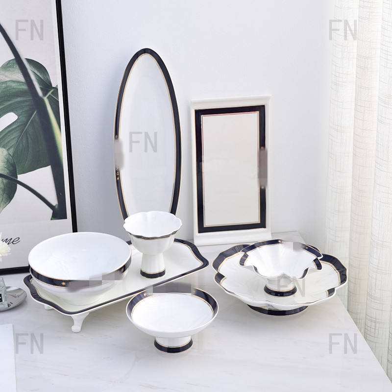 Ensemble de bols à dîner de style luxueux au design classique avec bord doré, plusieurs tailles, en porcelaine fine, assiettes profondes rondes en céramique