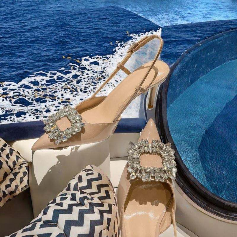 Escarpins élégants pour femme à talons hauts, style luxueux, avec empiècements de couleurs et décorations de perles, design à bout peu profond, polyvalents