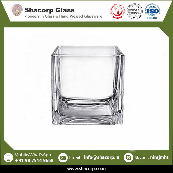 Votive en verre carré personnalisé de style de luxe disponible à un prix raisonnable de l'Inde