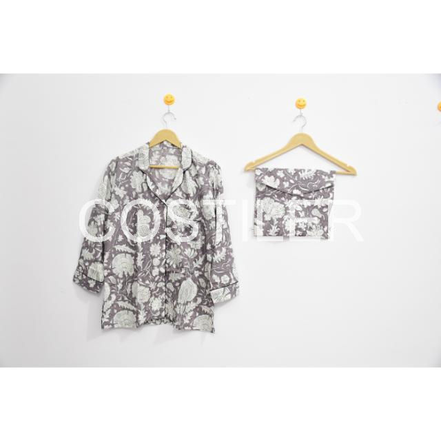 Ensemble de vêtements de nuit pour femmes imprimé bloc à la main de Style de luxe motif floral respirant doux coton pyjama pantalon et chemise ODM approvisionnement