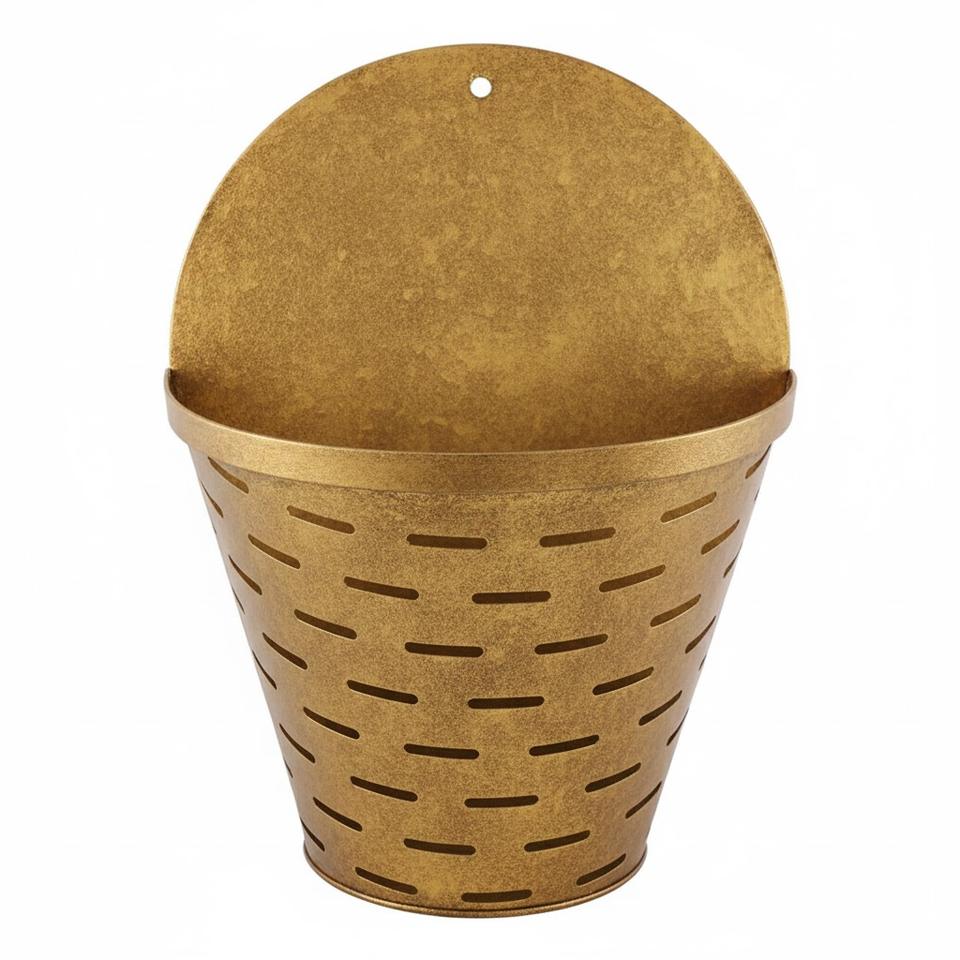 Jardinière en métal de style luxueux en forme de seau d'olives avec poignée, finition cuivre antique, conteneur de rangement décoratif pour la décoration de la maison