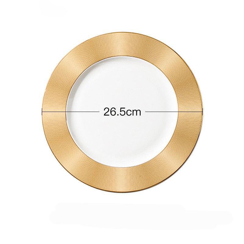 Service de vaisselle en porcelaine de style luxe assiettes rondes avec bord doré assiette décorative en céramique avec bord doré plats élégants
