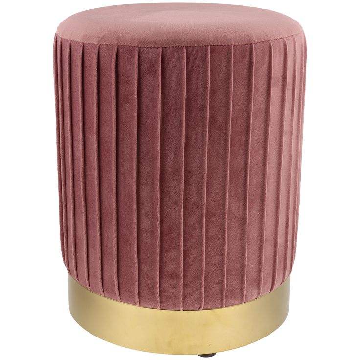 Style de luxe en acier inoxydable métal forme ronde or Antique fini avec tissu rose pouf tabouret maison Accent