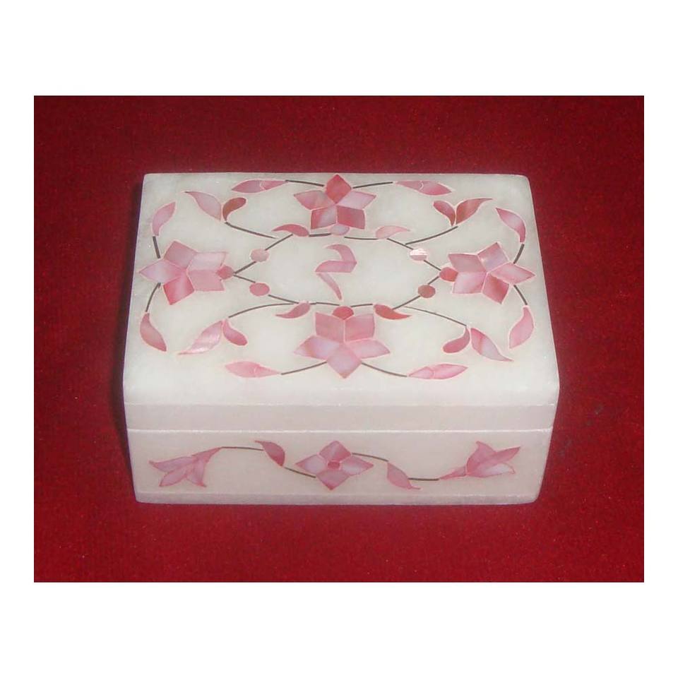 Boîtes à bijoux de luxe de style supérieur, en marbre blanc, avec incrustations de nacre, rectangulaires, en marbre blanc, avec motif floral