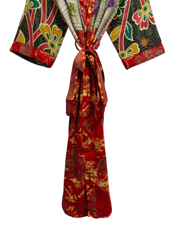 Luxury Summer Kimono Bikini Cover up, Night Wear Long Robe, Handmade Indian Vintage Recycled Silk Sari Kimono,