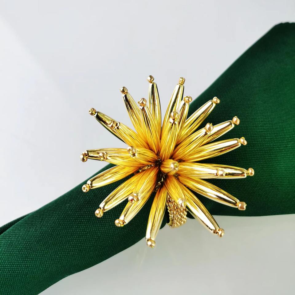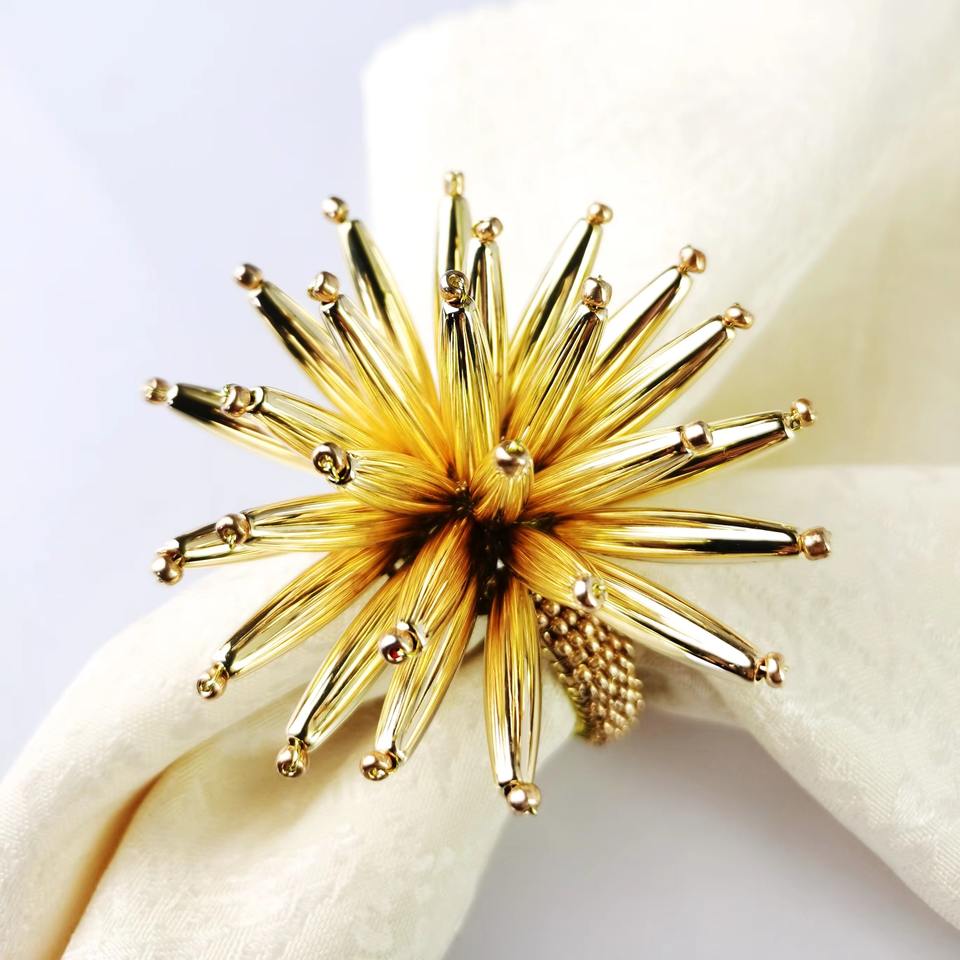 Rond de serviette de mariage de couleur or de conception de tournesol de luxe métal et cristal Design floral anneaux de serviette et porte-serviette décoratifs