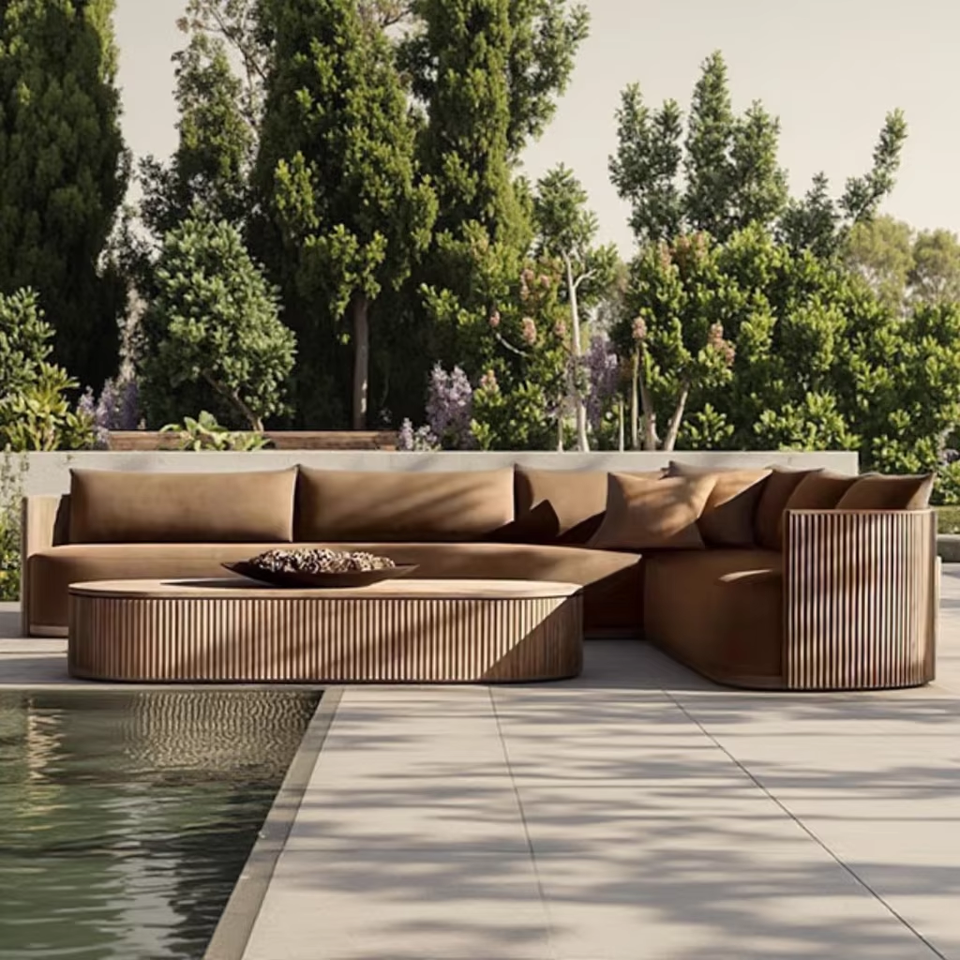 Luxury Teak Wood Outdoor Sofa Set Waterproof Large Luxury Outdoor Sofa Lounges Outdoor Living Room Furniture