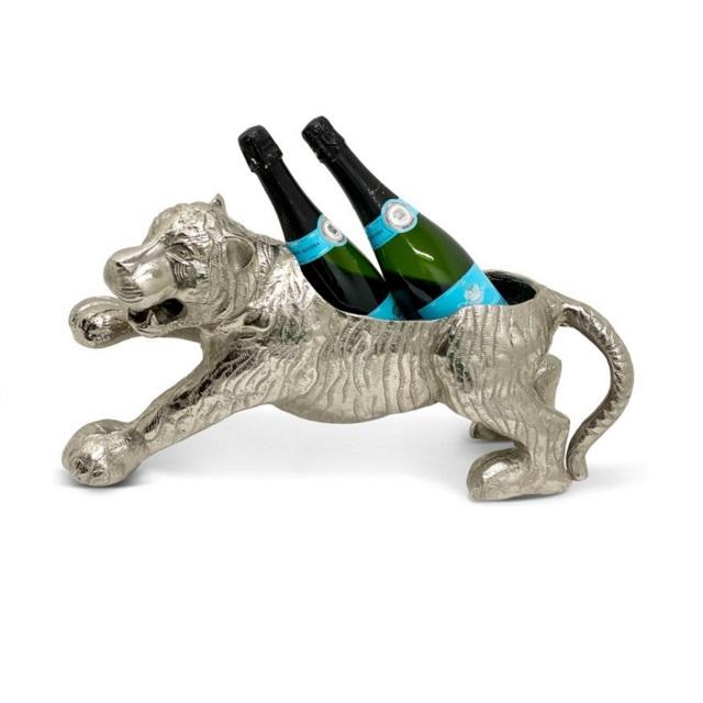 Seau à glace de luxe en forme de tigre avec poignée en cuir et Champagne fini à la main en aluminium de haute qualité