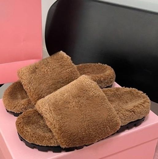 Sandales de luxe en fourrure de qualité supérieure, pantoufles compensées de créateur pour femme, chaussures d'extérieur confortables en fausse fourrure, grandes tailles
