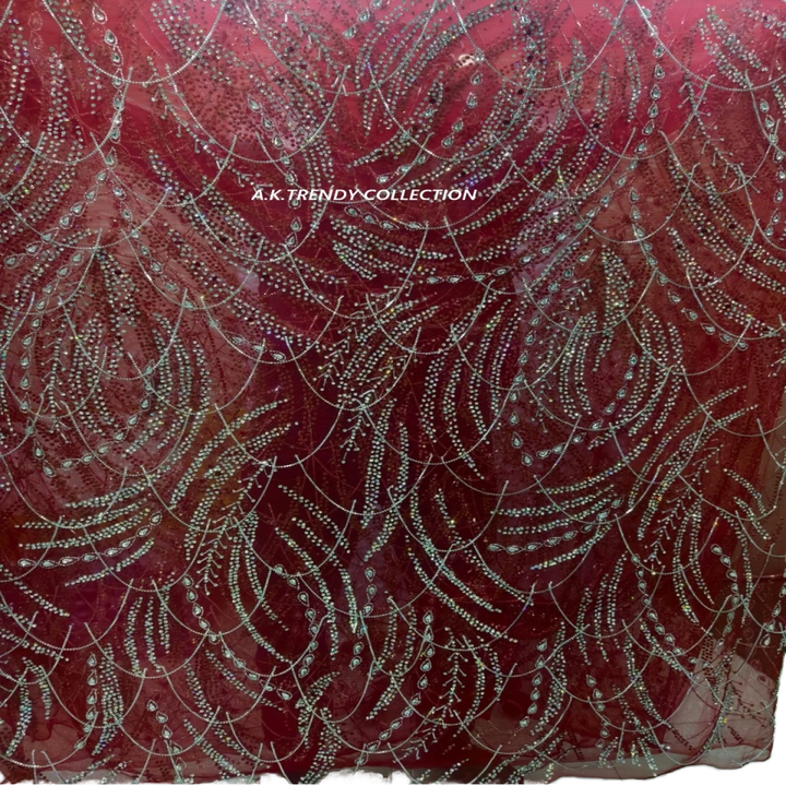 Tissu en dentelle française traditionnelle de luxe, fait à la main, avec des travaux de cristal et des embellissements perlés, matériau de haute qualité