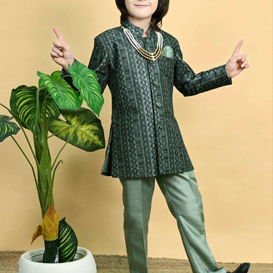 Luxury Traditional Silk Knee-Length Boys Sherwani Wedding & Party Outfit for Children Elegant Royal Appeal Wrinkle-Free Finish