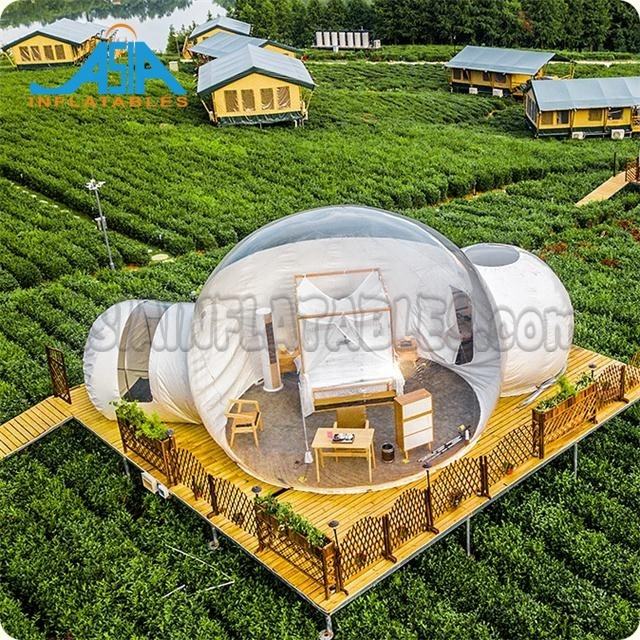 Tente de camping gonflable transparente de luxe, chambres en forme de bulle, lodge en forme de bulle transparente