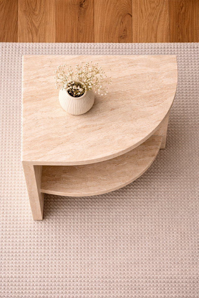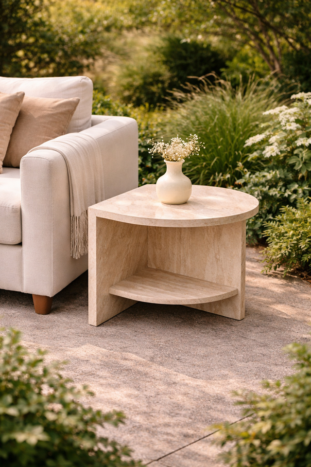 Table d'appoint en pierre de travertin de luxe, beige naturel, table d'angle, mobilier moderne pour salon, table d'appoint en pierre massif, décoration minimaliste