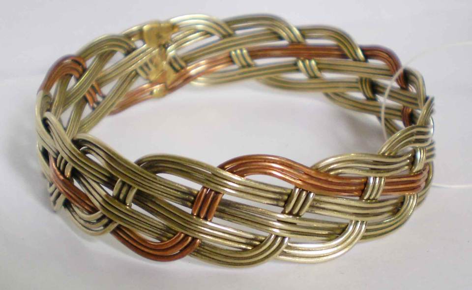 Luxury Tri Tone Copper Brass Silver Plated Braided Bangle For Women Unique Mixed Metal Wire Weave Design Solid Bracelet Elegant