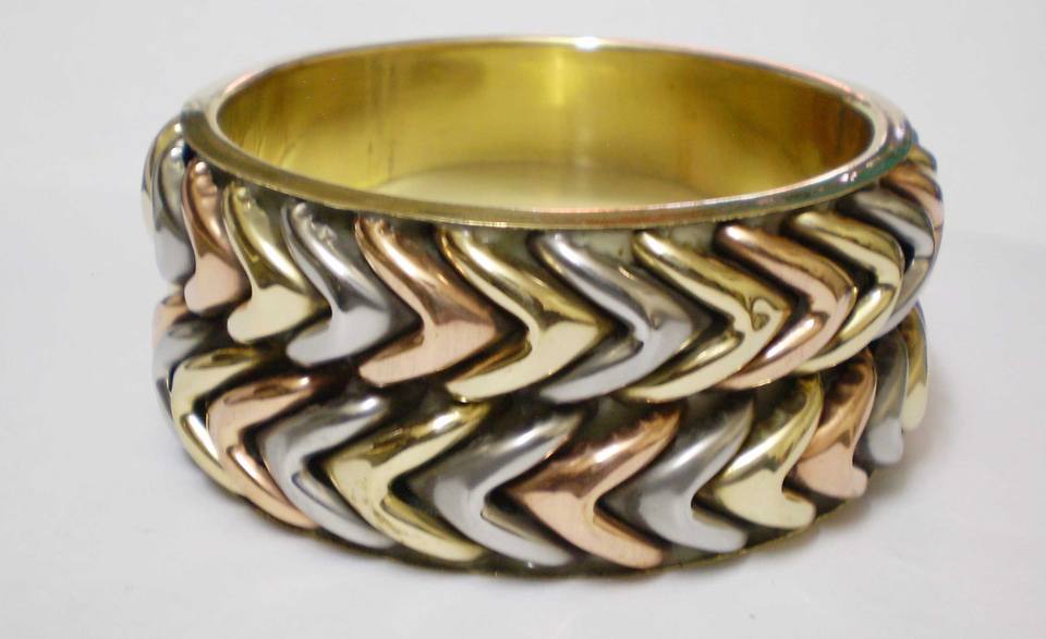 Bracelet jonc en cuivre à trois tons mélangés de luxe pour femmes, design tressé large tendance, élégant or argent rose