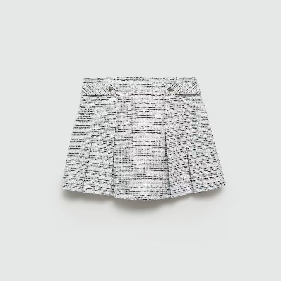 Mini-jupe en tweed de luxe avec boutons, taille naturelle, imprimé géométrique - Jupe d'été décontractée pour femme