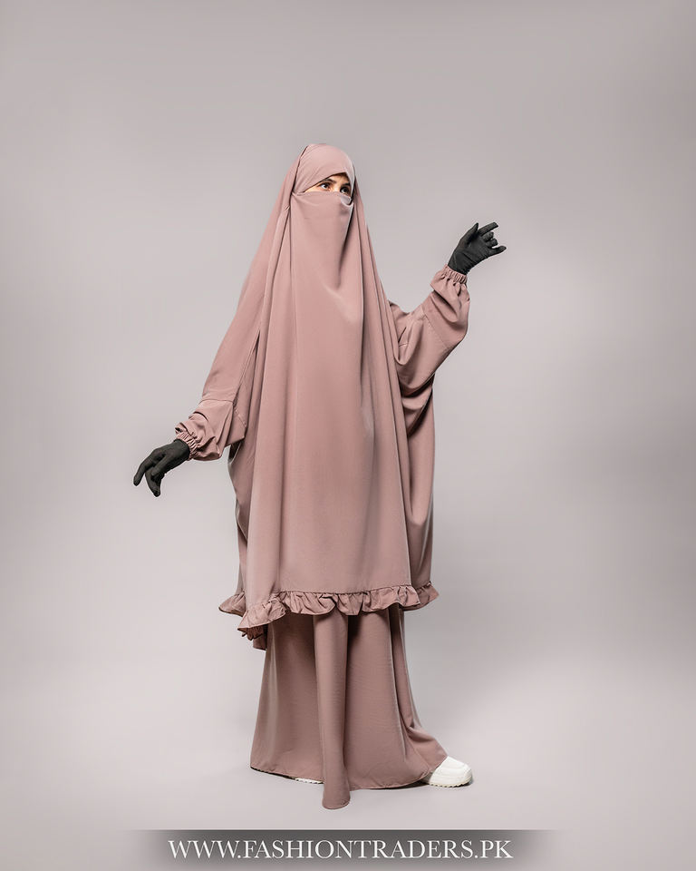 Product name:Two Piece Ruffle Jilbab With Elastic Sleeves