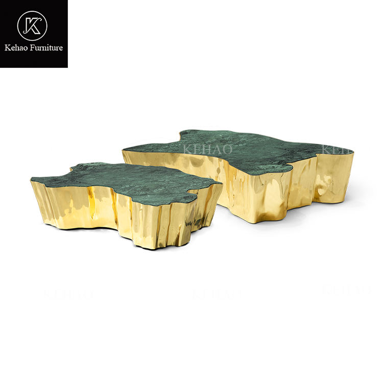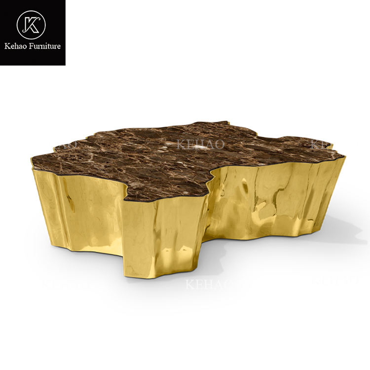 Table centrale dorée Eden au design unique de luxe Tables basses à tronc d'arbre en acier inoxydable doré au design nordique pour villa