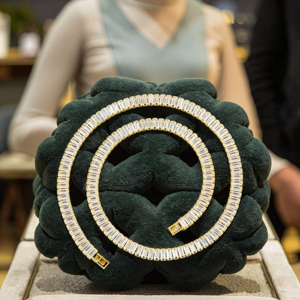 Luxury Unisex Rock Tennis Chain Hot Style Miami Cuban Gold Plated Link Chain with Zircon Hip Hop Necklace for Men